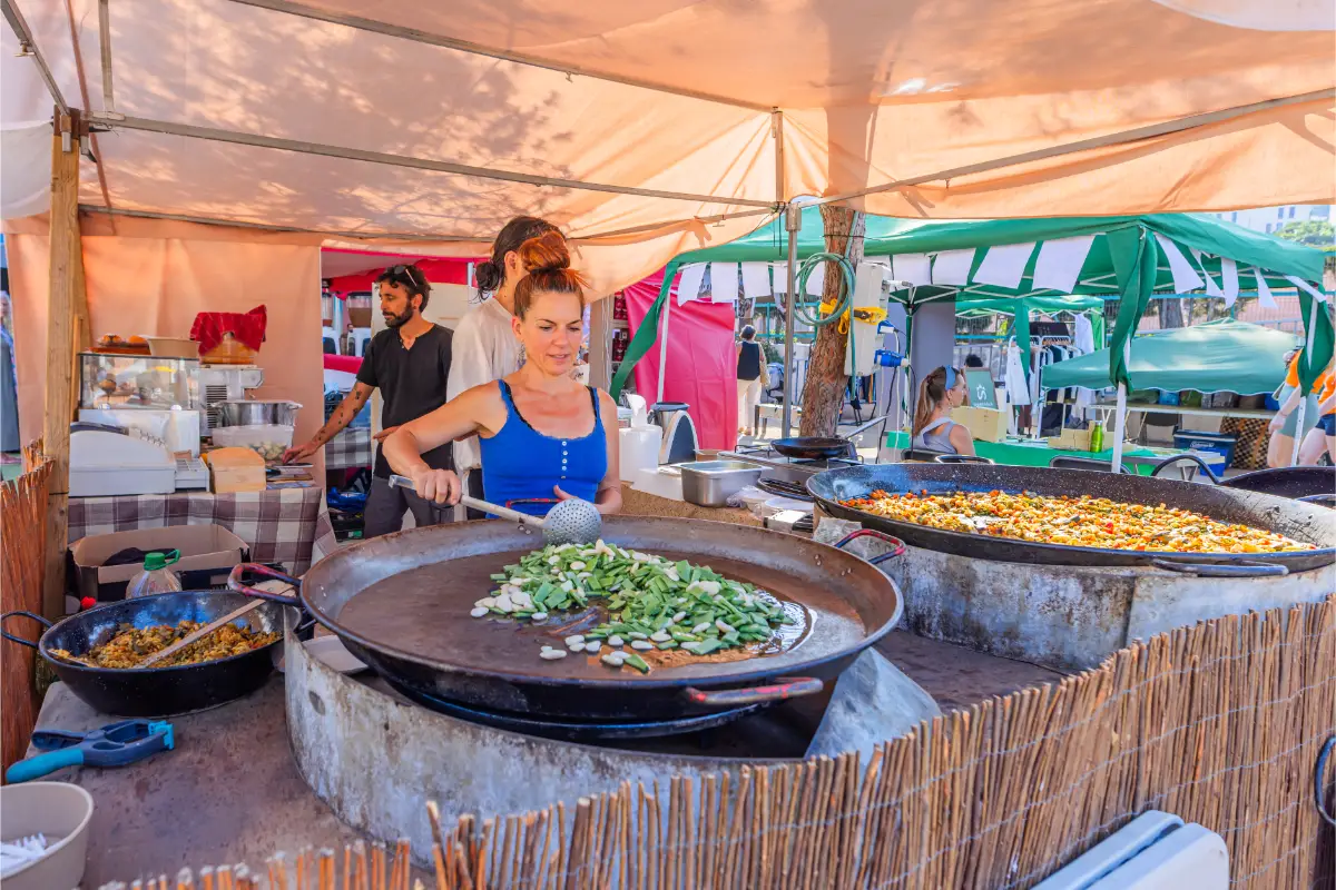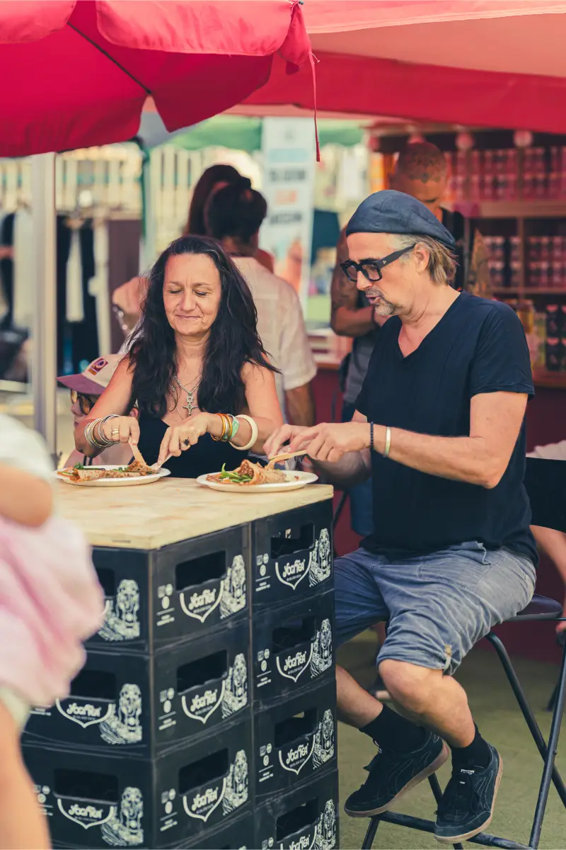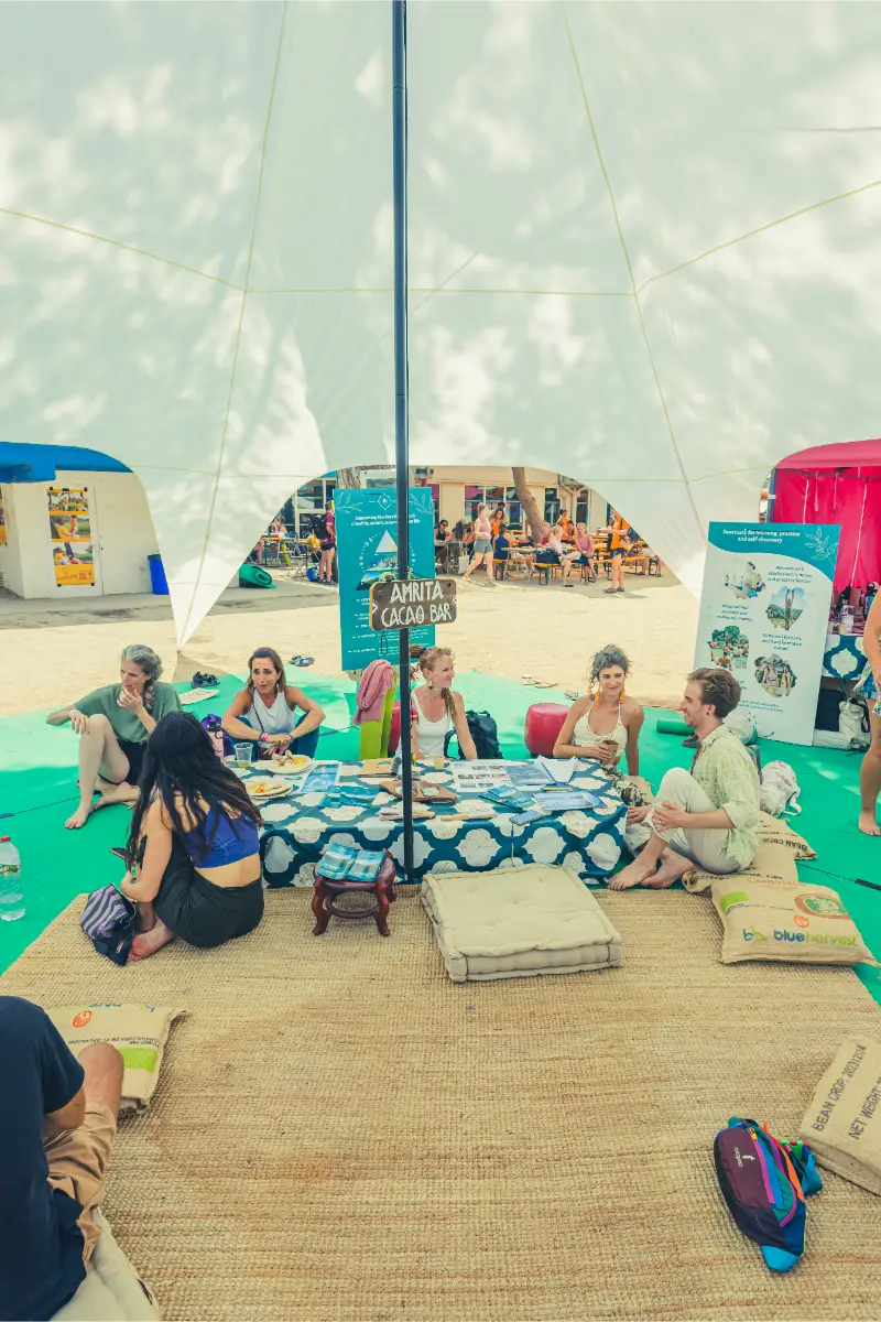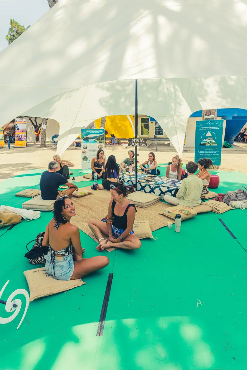 • Optional 3×3 meter tent rental (+60€) for sun protection (not 100% rainproof)